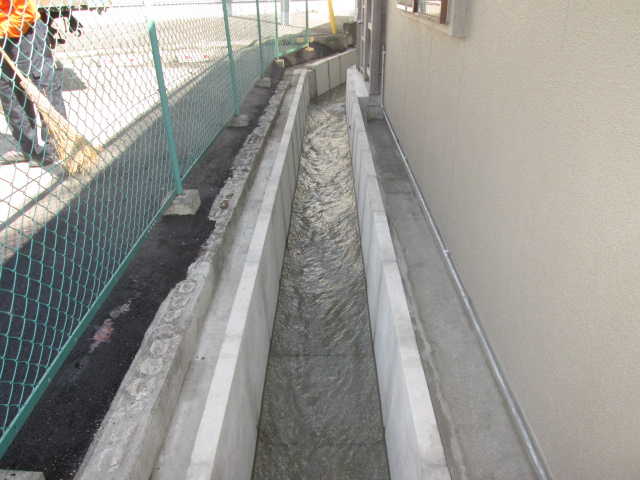 対応として、現状の水路内に既製品のU字溝を設置させていただきました。